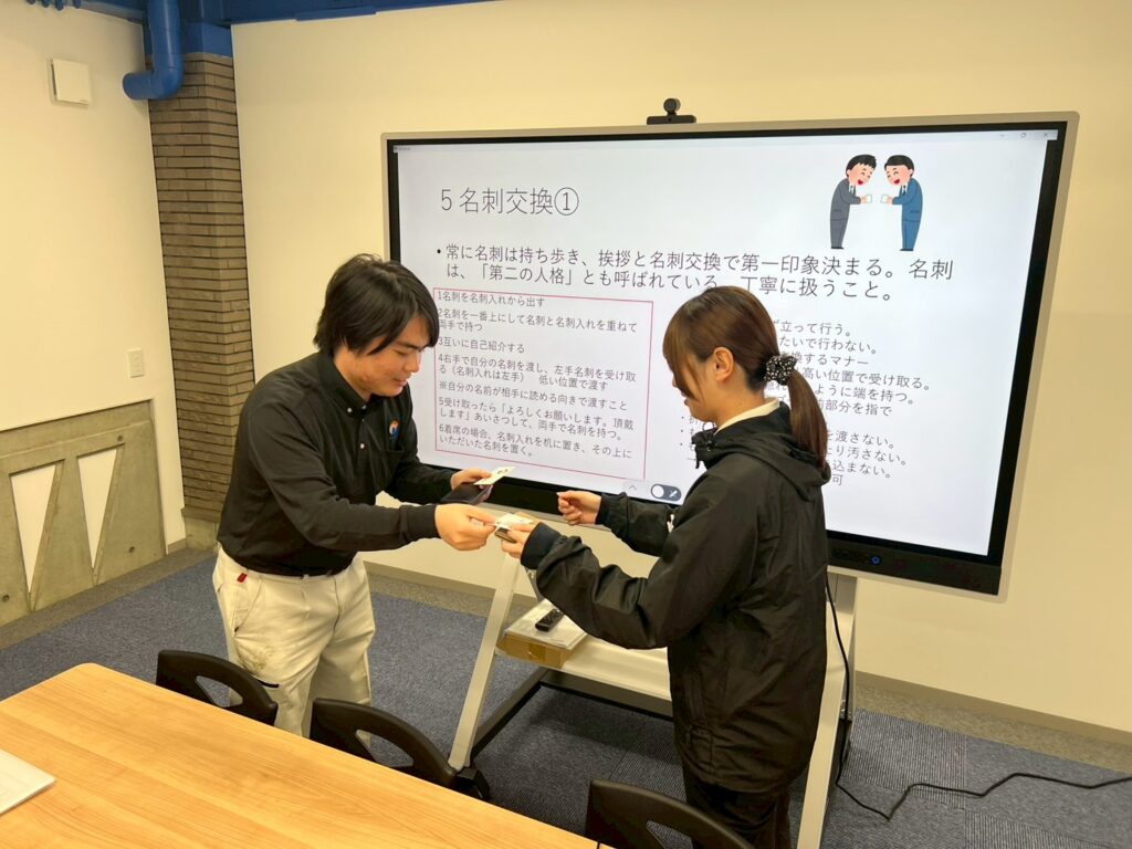 ビジネスマナー研修後は、名刺交換を積極的にしているみたいで