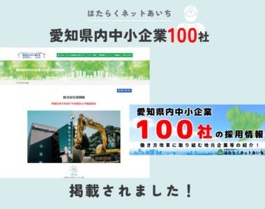 「愛知中小企業100社の採用情報」に掲載されました!